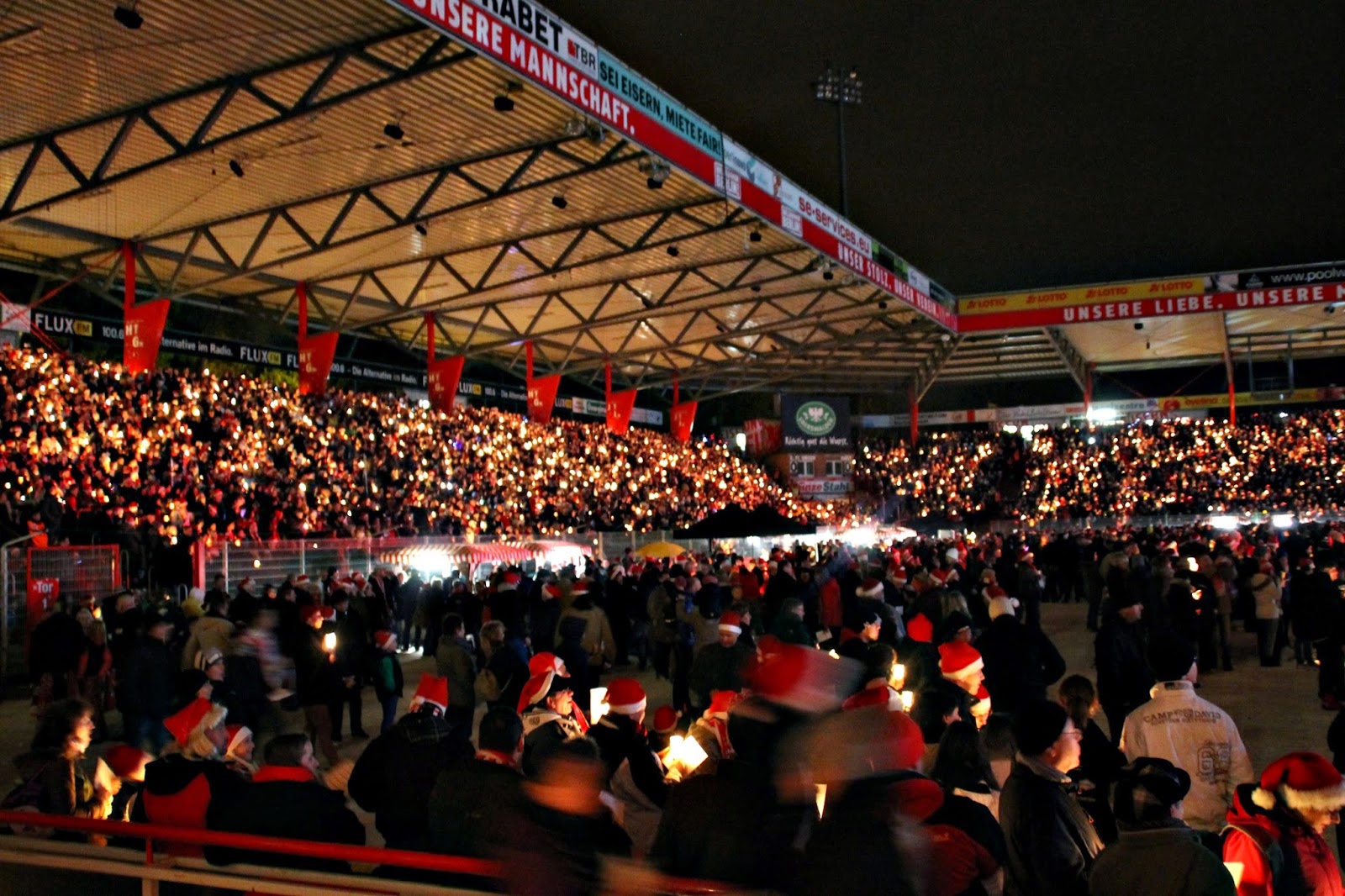 Ausgabe des weihnachtssingens wird erwartungsgemäß höher sein als die anzahl an plätzen. Als die alte försterei zwischen 2008 und 2013 umgebaut wurde halfen tausende fans von ihnen freiwillig. Mit etwa 28 500 teilnehmern im jahr 2016 kommt beim weihnachtssingen von union der inzwischen berühmteste weihnachtschor deutschlands zusammen. 89 verrückte trafen sich halblegal mit glühwein und gebäck auf höhe der mittellinie im stadion an der alten försterei zum weihnachtsliedersingen. Das weihnachtssingen vom 1. Alte försterei oder af ist mit einem fassungsvermögen von 22 012 zuschauern bei bundesligaspielen das größte reine fußballstadion in berlin welches jedoch den anforderungen des dfb an fußballstadien der kategorie 4. Der verein ist unsere familie sagt eisenbeiser.