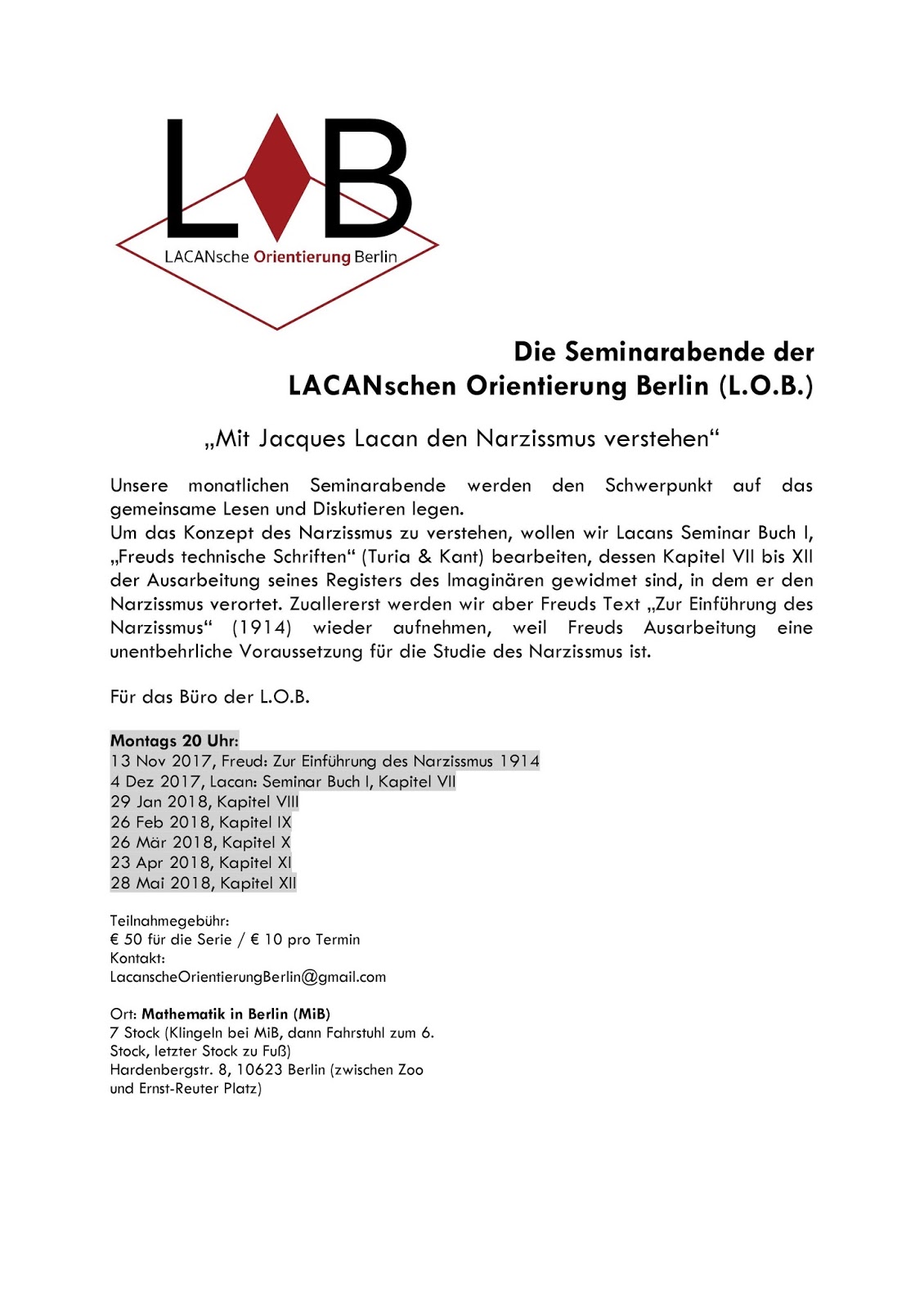 Berlin Mit Jacques Lacan Den Narzissmus Verstehen Programm